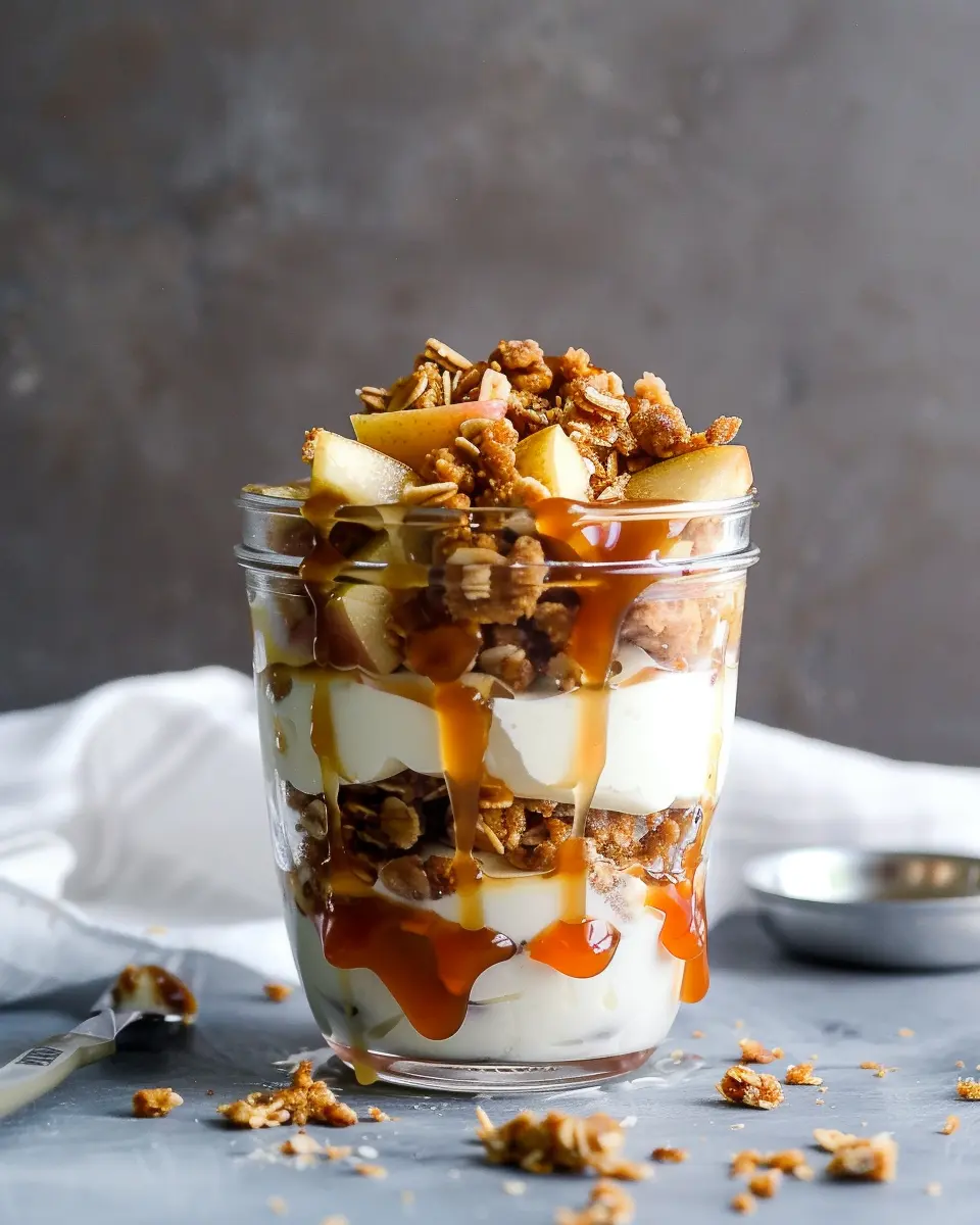 Now comes the fun part—assembling your Caramel Apple Crisp Yogurt Parfait! Grab a clear glass or jar to show off those layers. Start with a generous spoonful of creamy yogurt—Greek yogurt works wonderfully for its thickness. Then, sprinkle in some of the caramelized apples, followed by a layer of your crisp mixture (which is simply rolled oats mixed with flour, sugar, and the melted butter). Drizzle some of your homemade caramel sauce over it all, repeating these layers until you reach the top of the glass. Finish with a dollop of yogurt and perhaps a sprinkle of cinnamon and some extra apple pieces for presentation. Beautiful!