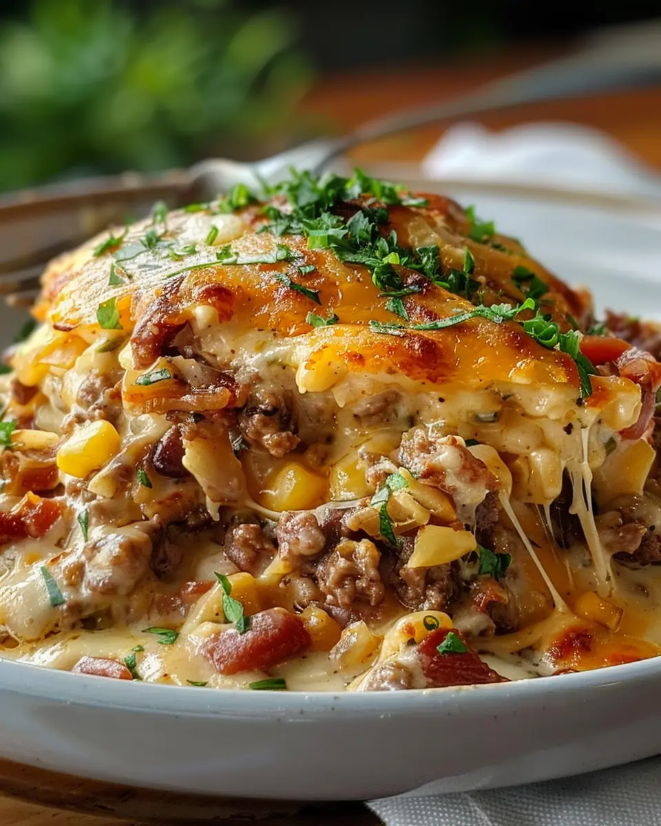 Cowboy Casserole Delight: A Comforting Twist with Turkey Bacon and Chicken Ham