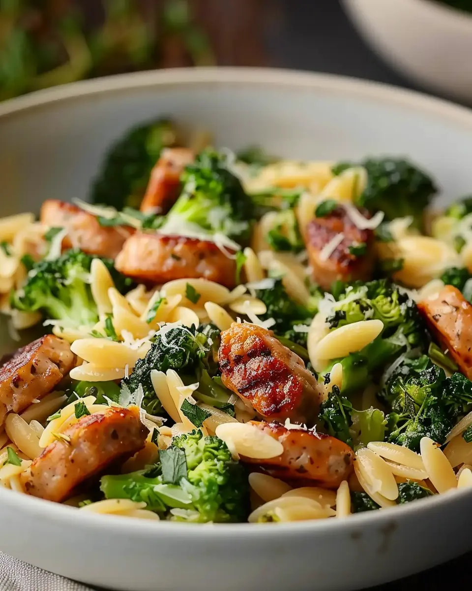 PrintChicken Sausage and Broccoli Orzo: A Deliciously Easy Comfort Meal