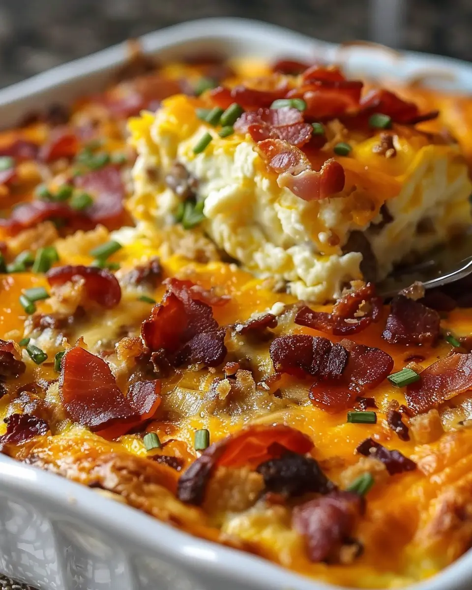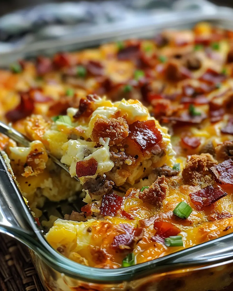 Enjoy a delicious and comforting Crack Breakfast Casserole made with turkey bacon and chicken ham, perfect for brunch or a hearty breakfast.