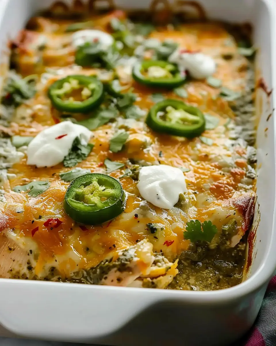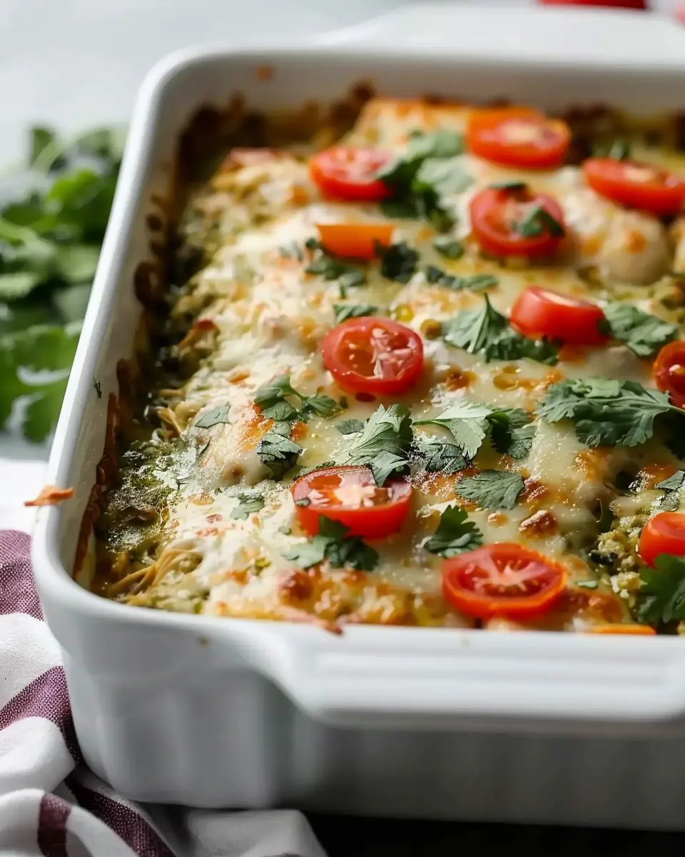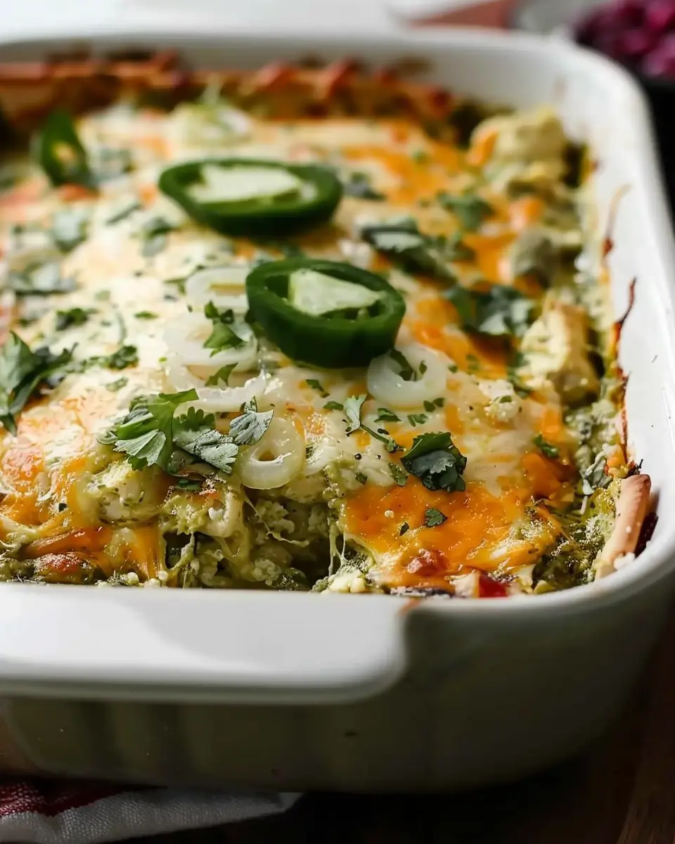 A mouthwatering casserole that combines tender chicken with zesty salsa verde, topped with melted cheese for a comforting meal.