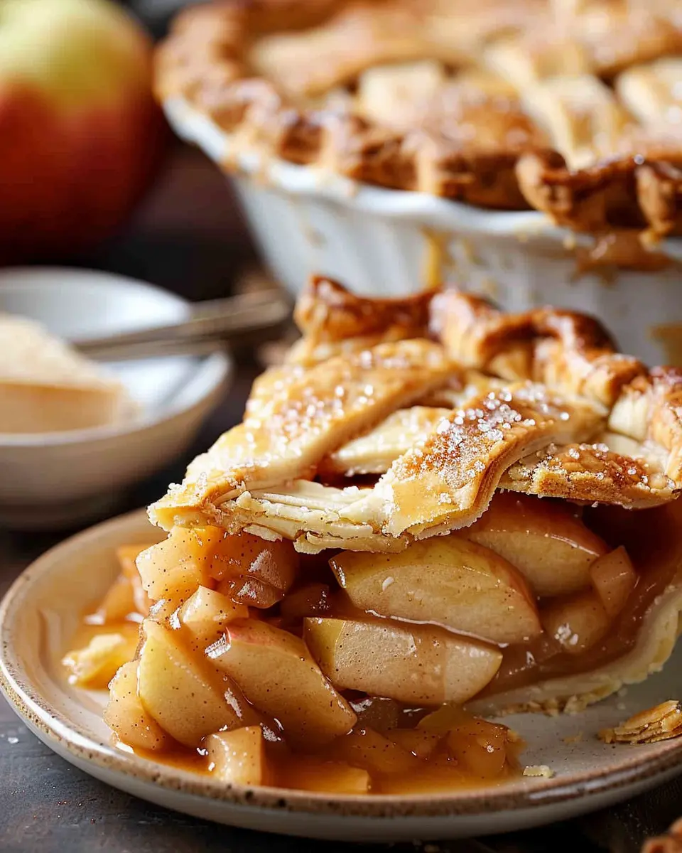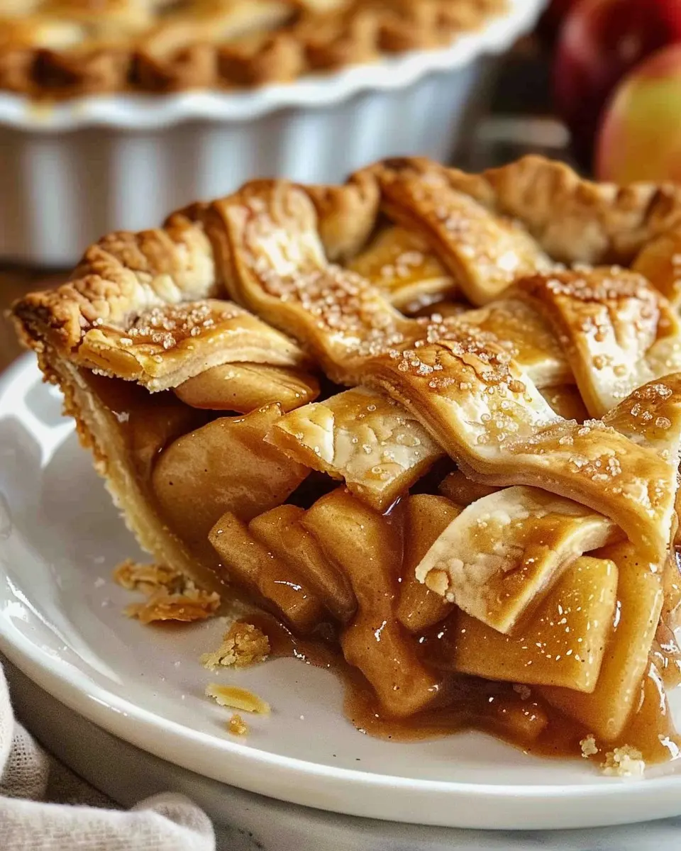 A deliciously indulgent pie featuring a flaky crust and brown sugar apple filling.