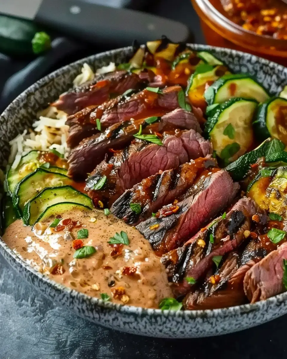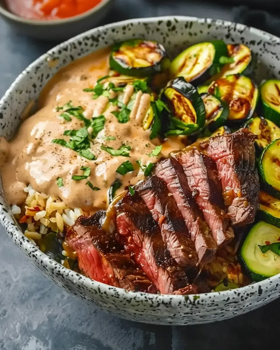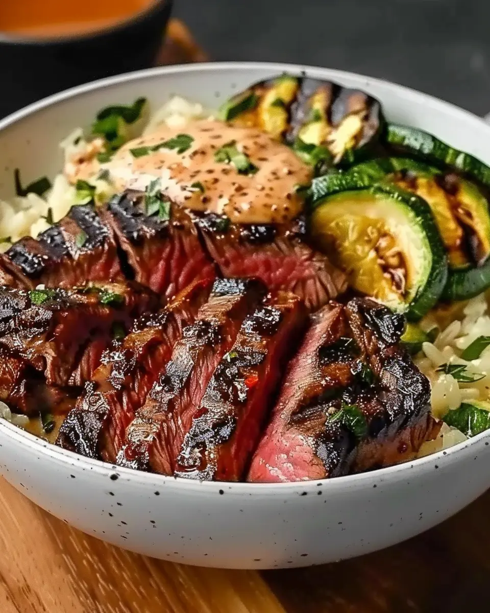 Grilled Steak Bowl: Juicy Recipe with Sauce & Grilled Zucchini
