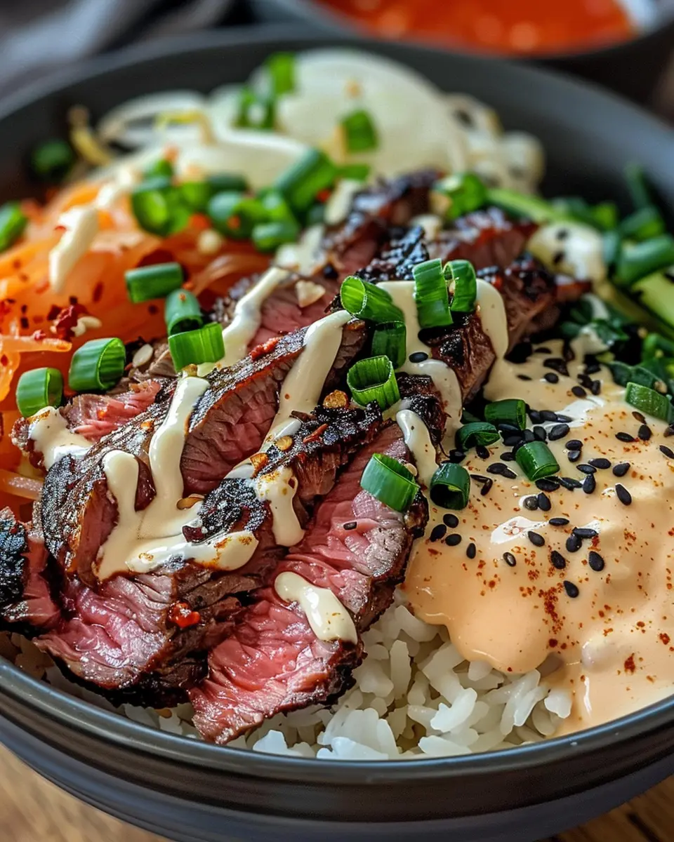 Creating Korean BBQ Steak Rice Bowls at home is a rewarding experience that can elevate your weekly meal routine. Not only do these bowls burst with flavor from the marinated steak and spicy cream sauce, but they also allow for personal customization. Whether you prefer more veggies or a crunchier texture, the choices are endless!