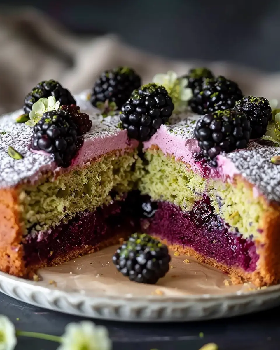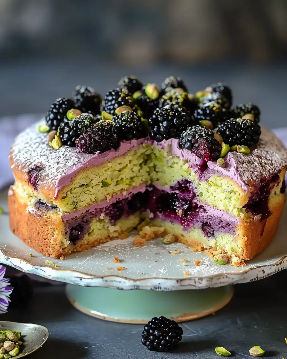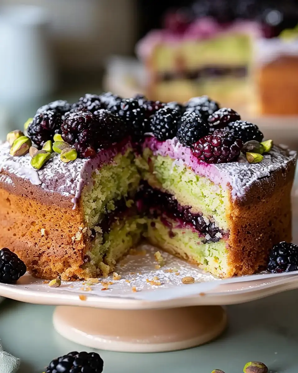 In conclusion, the Pistachio and Blackberry Olive Oil Cake Recipe is not just a dessert; it’s an experience for the senses. The nutty, vibrant flavors of pistachios paired with luscious blackberries create a delightful balance that invites you to savor each bite.